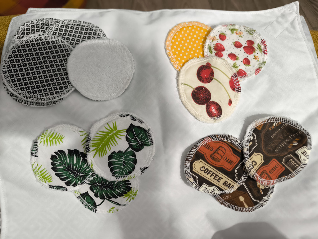 Újrahasználható arctisztító korong,a tudatosság jegyében. 8 cm átmérőjű, egyik oldala pamutvászon, másik oldala frottír.