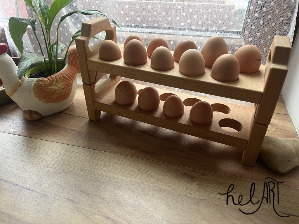 A tojástartókba 10 db kb S-M méretű vagy annál nagyobb tojást tudsz elhelyezni és a tartók egymásba passzolnak , egymásra rakhatóak Mérete Felülete csiszolt és élelmiszer biztos olajjal kezelt
