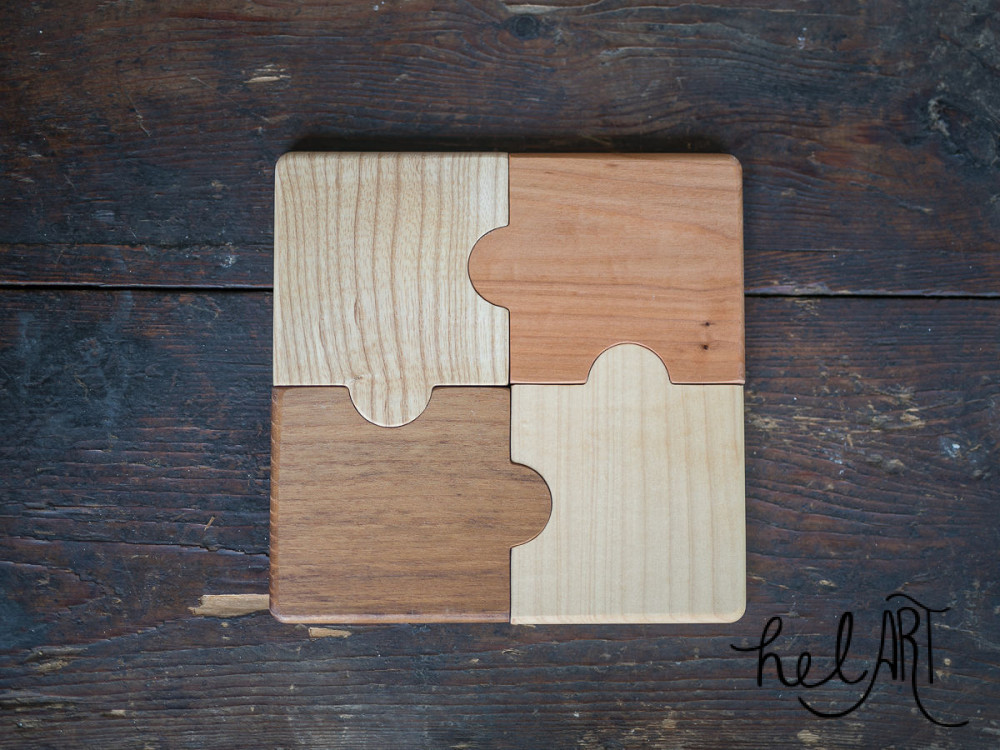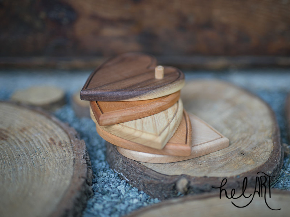 Poháralátét vegyes fából (kőris , juhar, bükk , dió , éger , cseresznye ) A szett tartalmaz 4 db poháralátétet