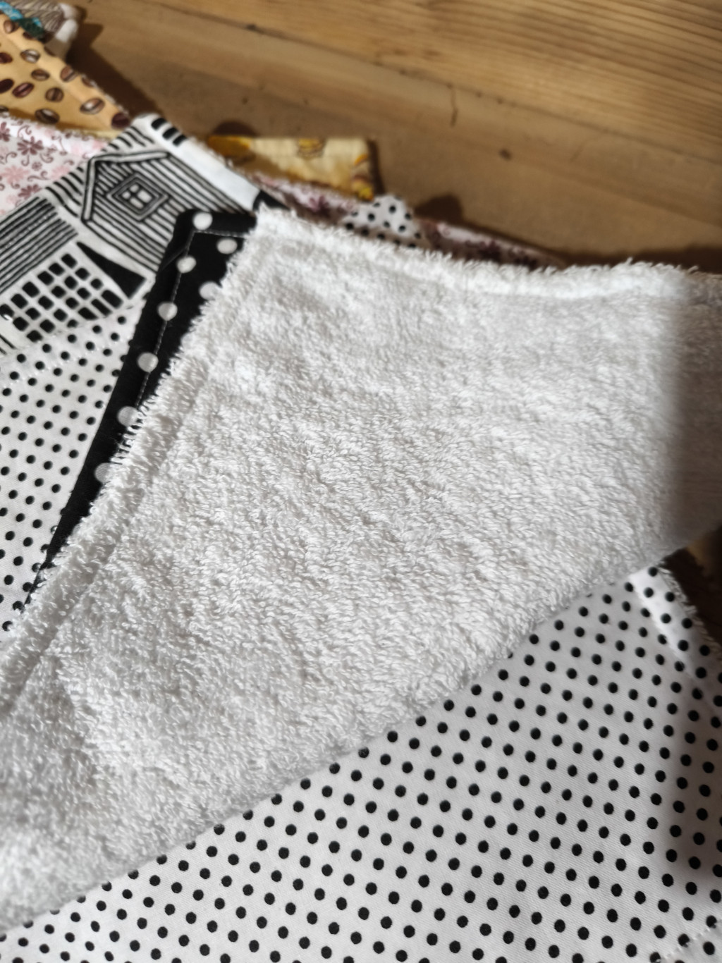 Papír törlő helyettesítésére készült termék, pamutvászon és frottír anyagból .Mérete 25*25 cm.