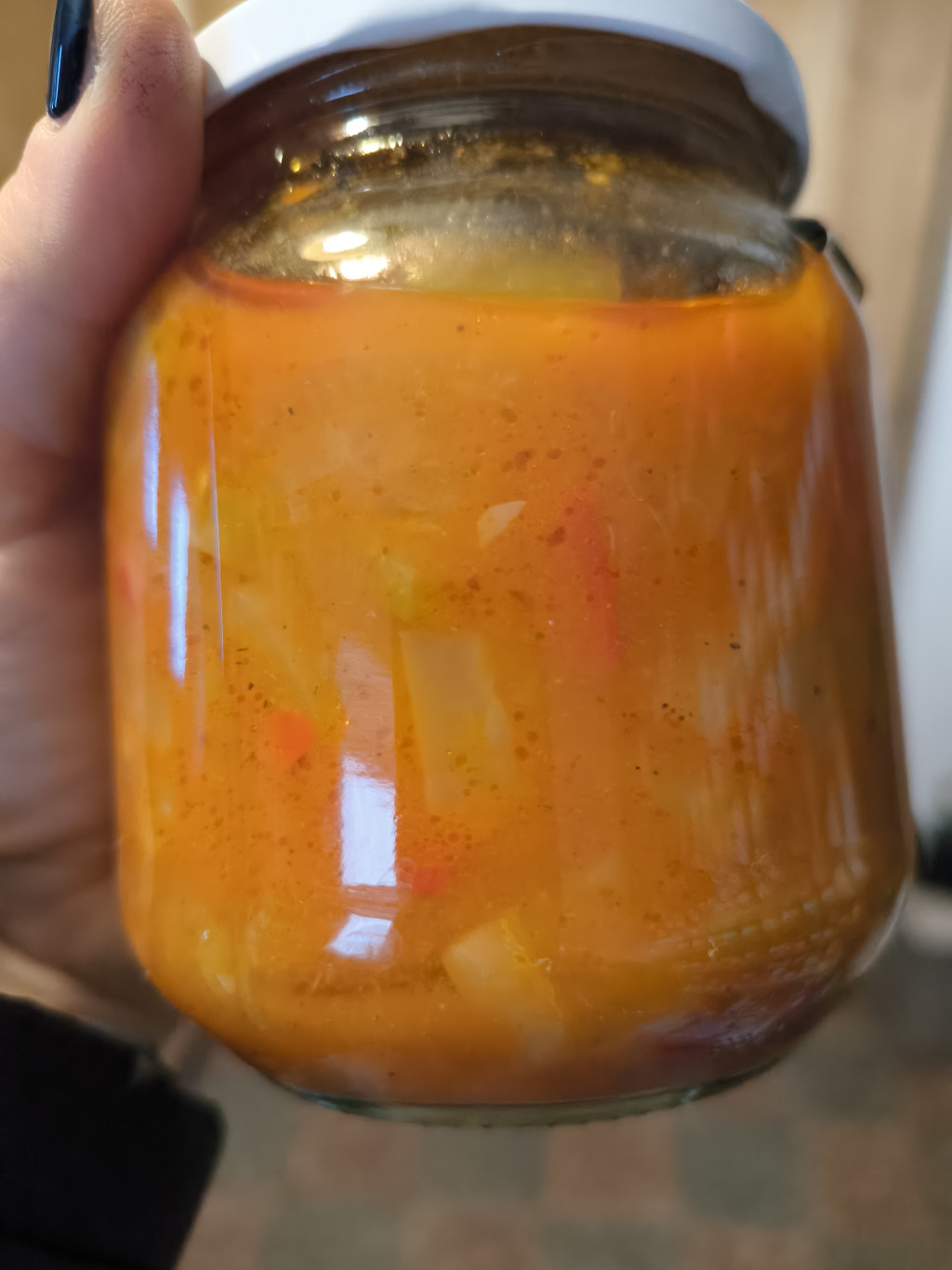 Finom fűszerezésű zakuszka vegyszermentesen termesztett zellerből, pritamin paprikából, paradicsomból vöröshagymával, fűszerekkel.
