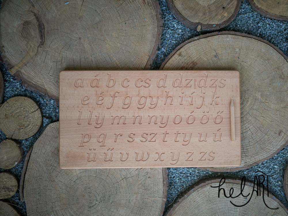 A tábla mellé egy kb 12 cm nagyságú szintén bükk ceruza is jár, amivel a gyerekek könnyedén le tudják követni a formákat, begyakorolni a betűket, így utána már papíron, ceruzával is könnyedén menni fog!