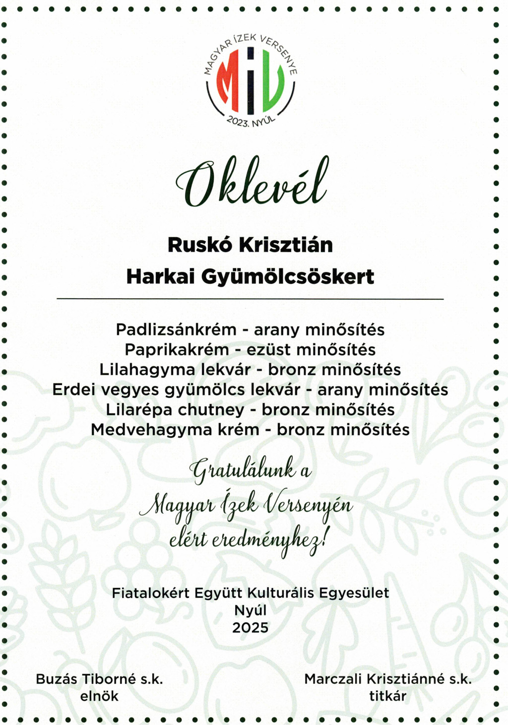 A 2025-ös Magyar Ízek Versenyén arany fokozattal díjazott termék.