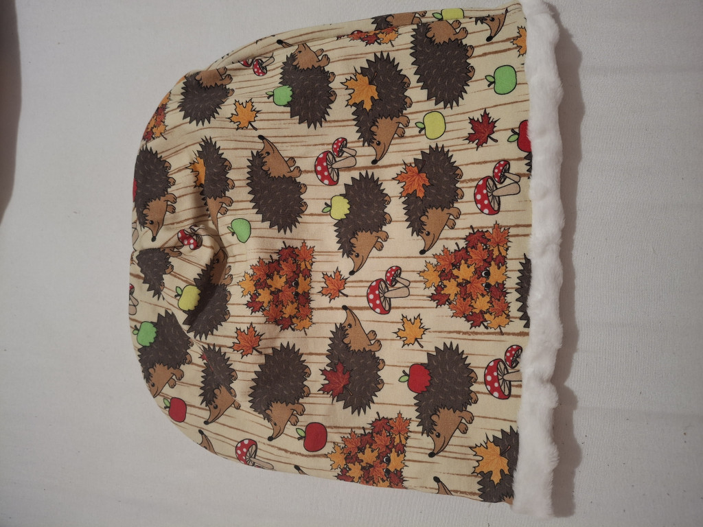 Bájos sünis mintával,meleg minky béléssel készült sapi.
