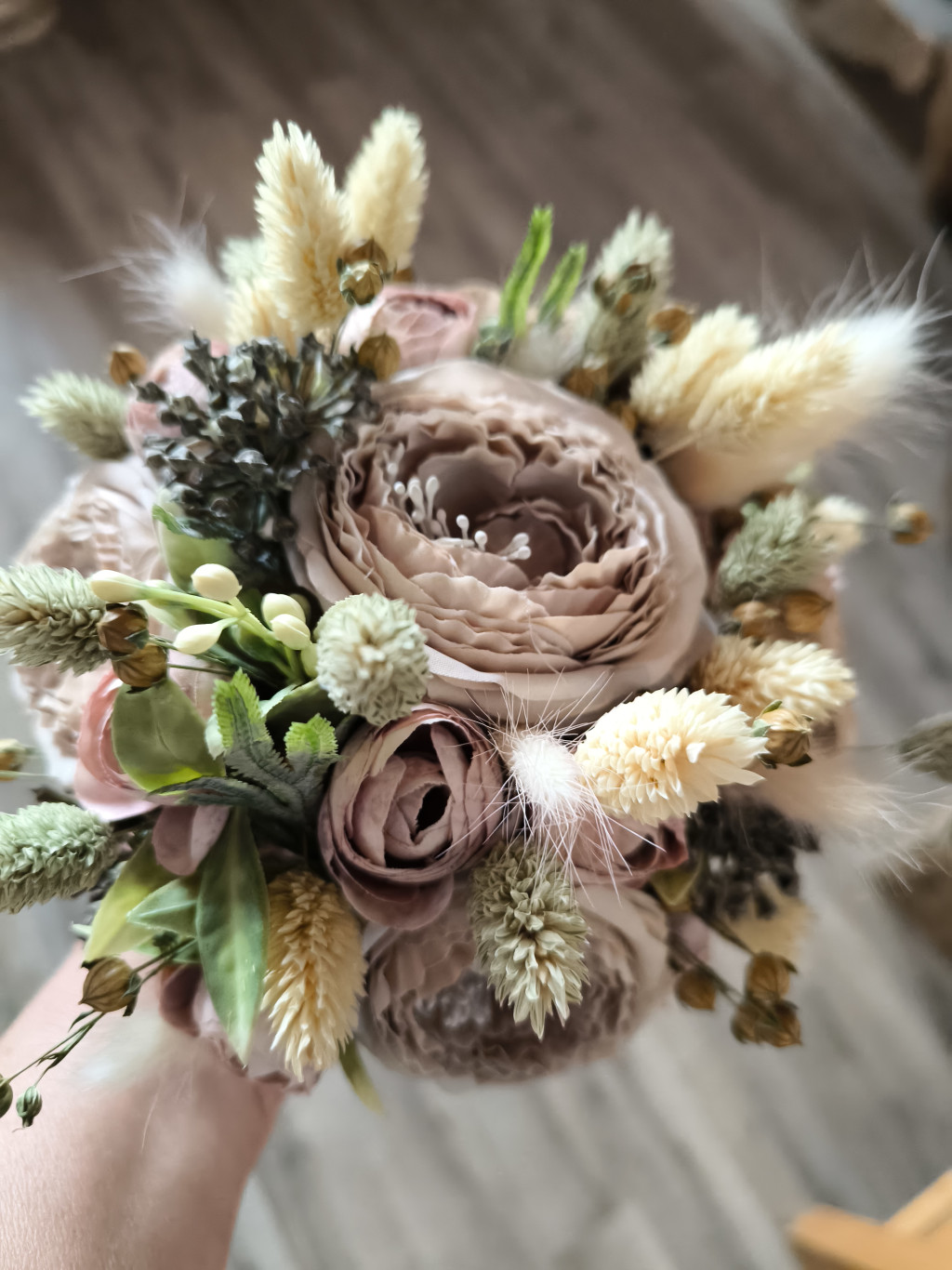 Egyedi kézműves termék,élethű művirágot és szárított növényt tartalmaz. Egyedi.