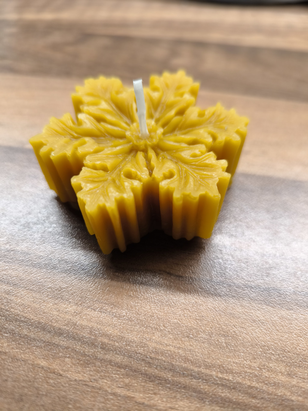 Méheink által gyűjtött viaszból készült. Átmérője 7, 5 cm, magassága 9,5 cm.