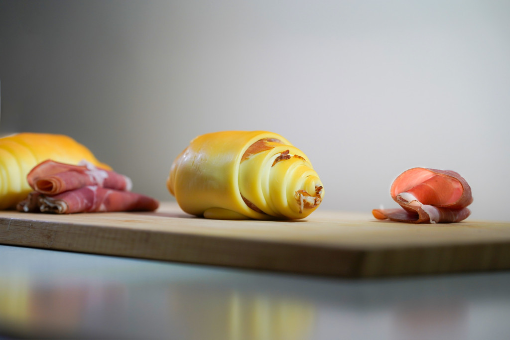Hevített gyúrt sajt, melyet szalagra nyújtunk, sózunk és csiga vagy croissant formára tekerünk.