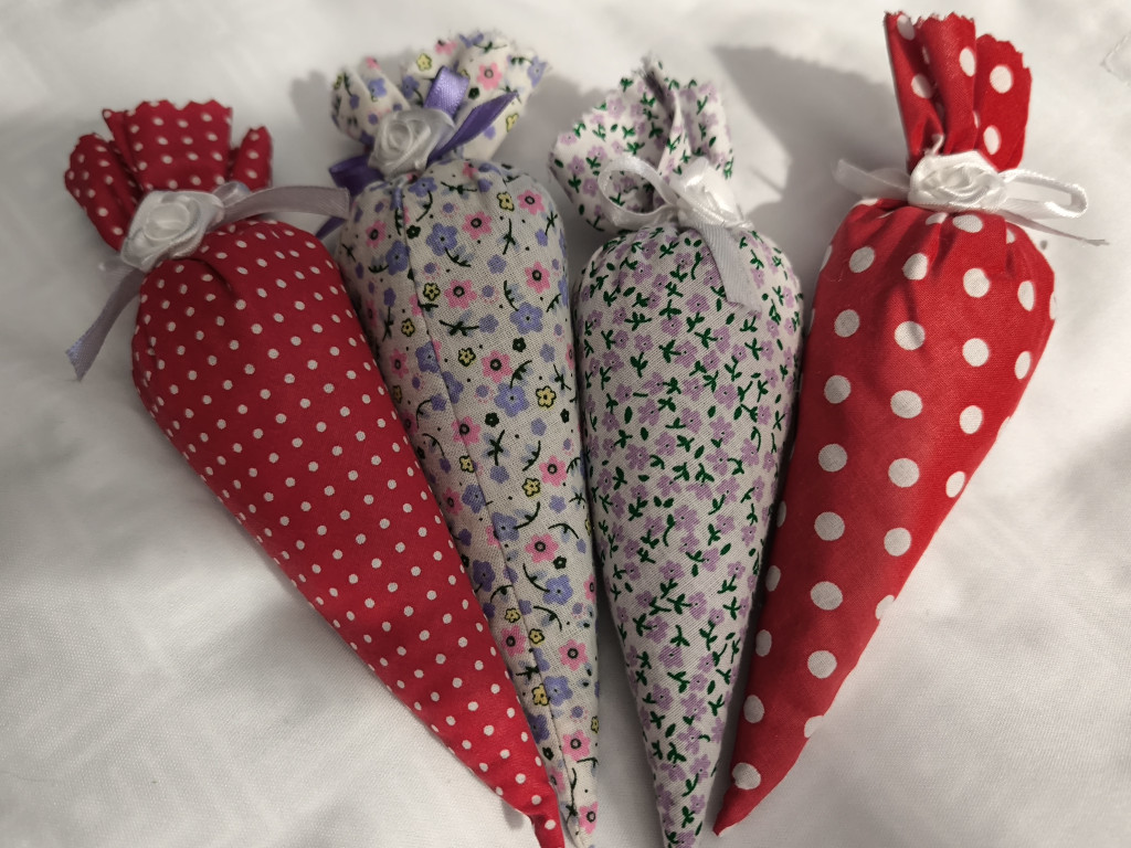 Pamutvászon anyagból készült, belsejében levendula. Isteni illata van. Bármilyen ruhanemű zsebébe vagy a szekrénybe helyezve illatosít.6*7 cm-es