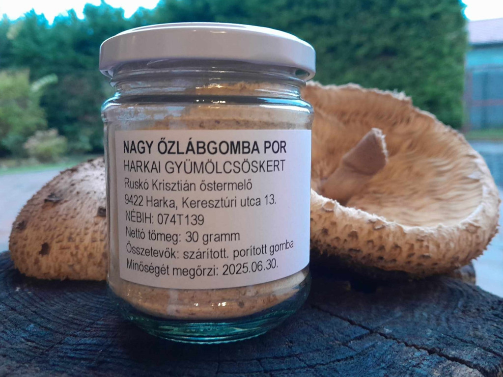 Szárított, őrölt Nagy Őzlábgomba. Intenzív ízű fűszerpor, remek kiegészítője lehet egy rántottának, alapja egy krémlevesnek, rizottónak...stb.