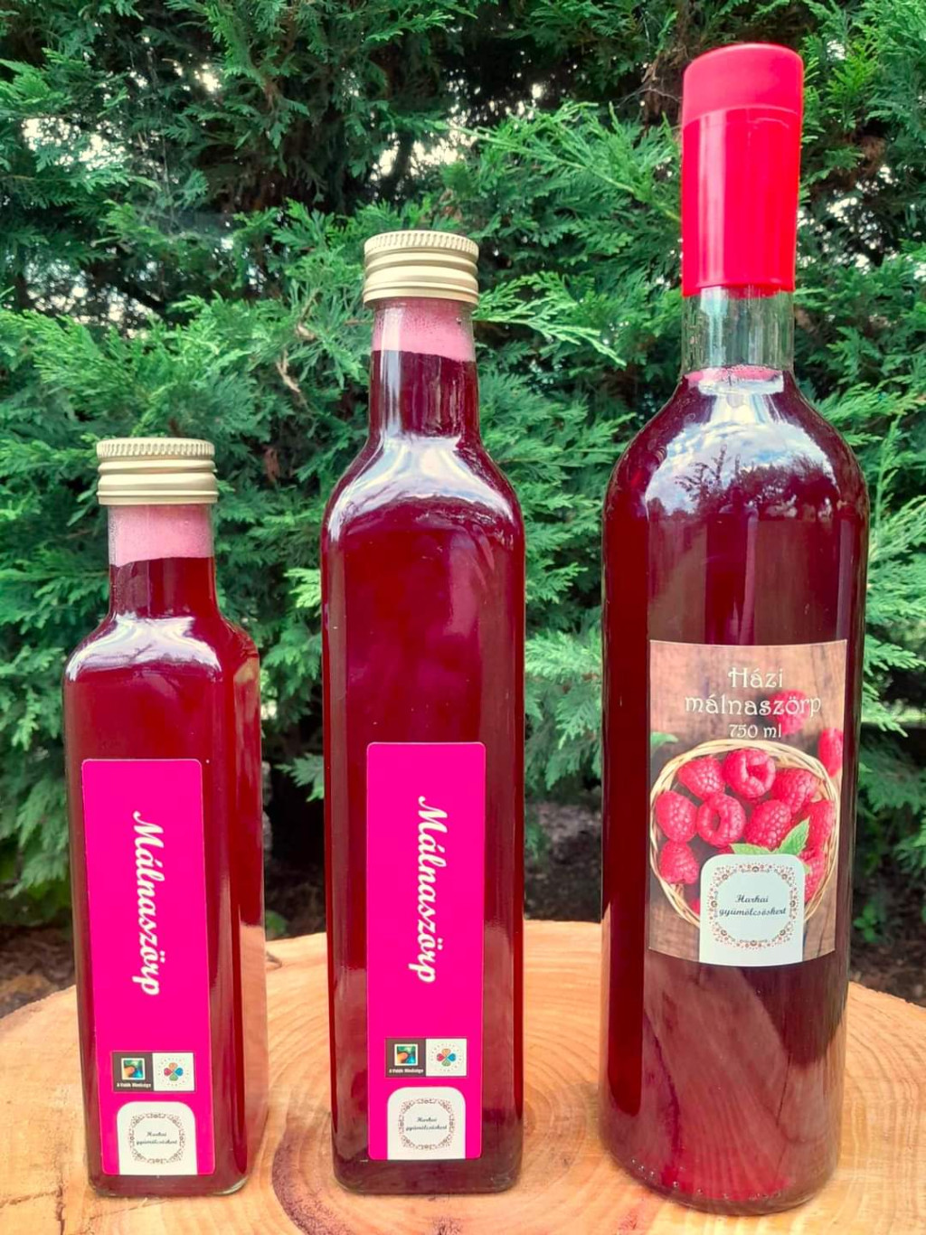 Málna gyümölcsszörp 62% málnalé-tartalommal, vegyszermentes málnából.
