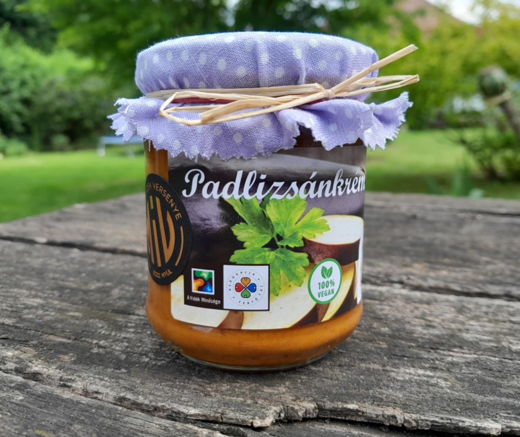 Házi padlizsán-pástétom vegyszermentes alapanyagokból, paprikaval, finom füszerekkel. A 2025-ös Magyar Ízek Versenyén arany fokozattal díjazott termék. Tartósítószer- és színezékmentes.