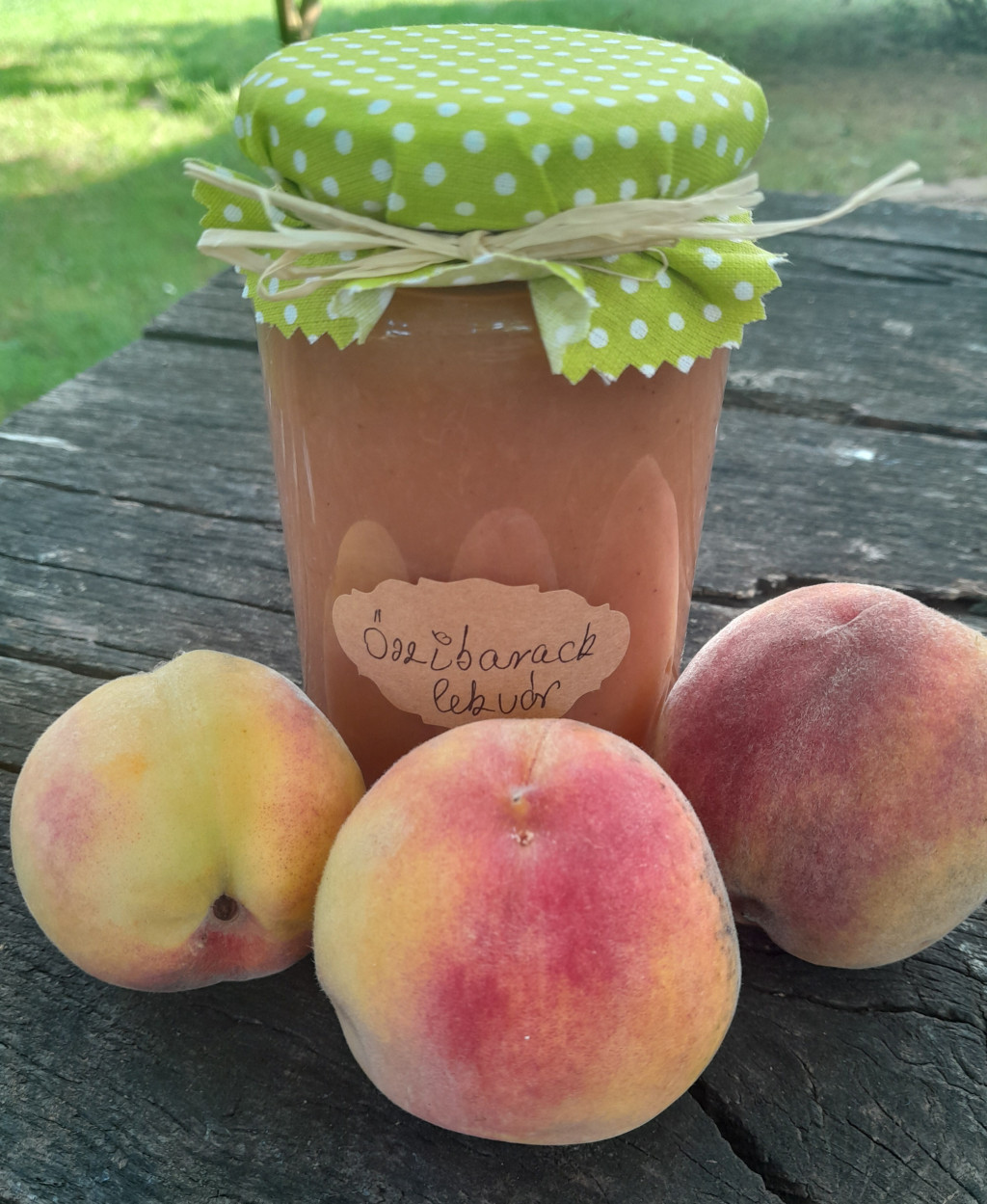 Házi őszibarack gyümölcslekvár vegyszermentes poncichter barackból, répacukorral.