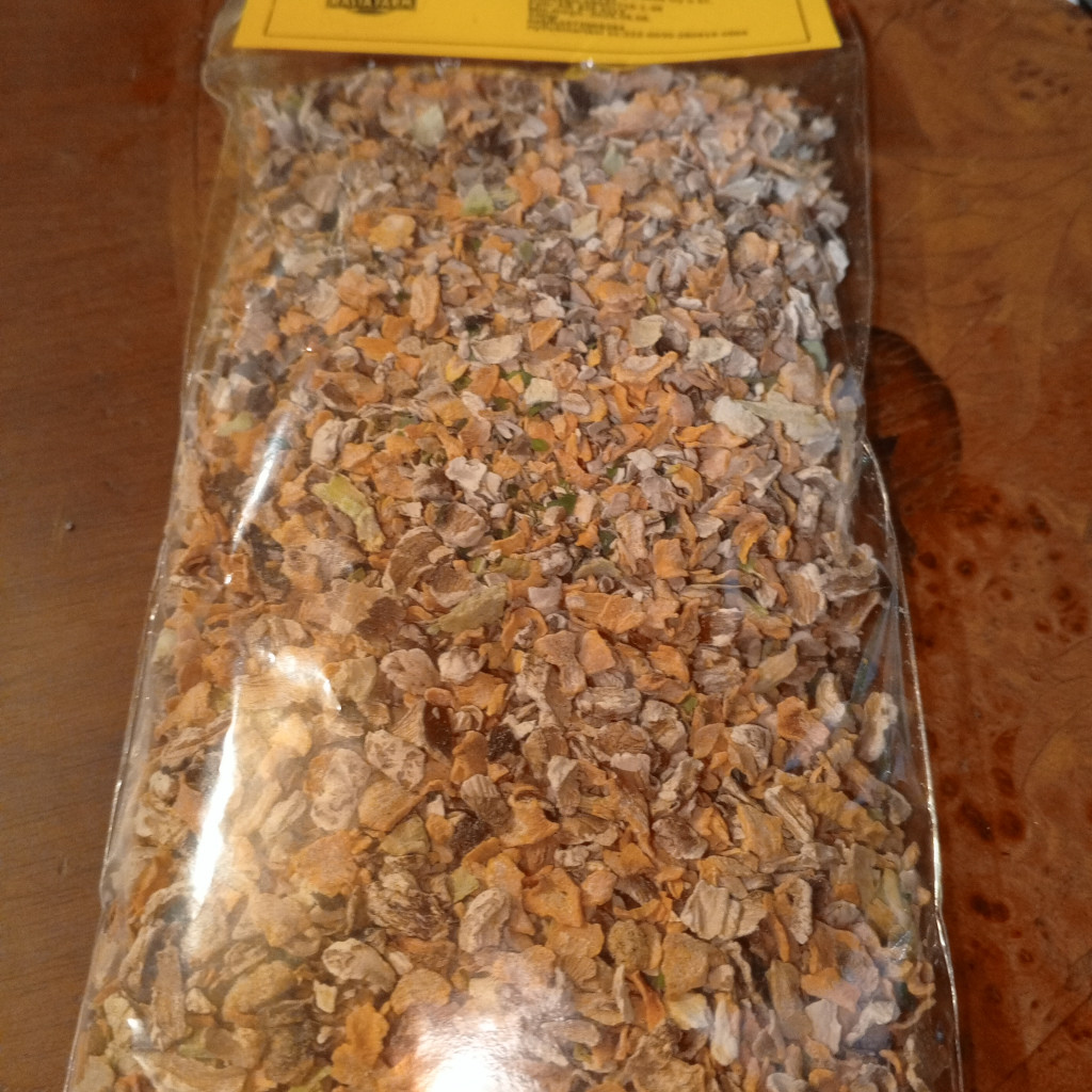30% szárított csiperke, sárgarépa feherrepa petrezselyem, karalábé. 100 gr/cs